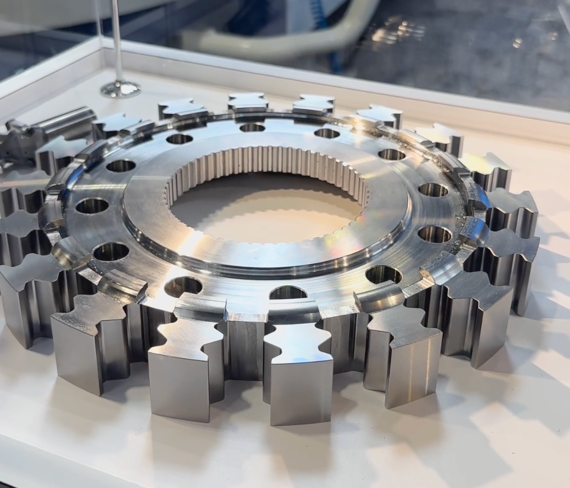 Derek Schroeder of GROB showcases the company's latest aerospace machining solutions at MTS Series East 2025, highlighting a horizontal five-axis machine equipped with a 630 mm pallet and a highly rigid Z-axis designed for high-precision milling, drilling, and gear skiving.